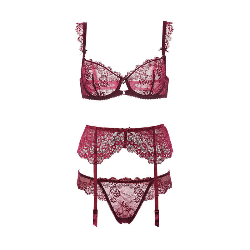 Name: Customize 3 Pieces Sexy Lace Thin Bras Set Underwire No Pad Lingerie for Women